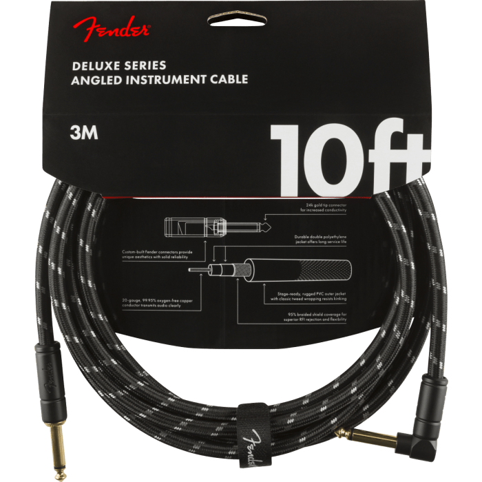 De kabels uit de Fender Deluxe Series bevatten materialen van de hoogste kwaliteit en een gevlochten afscherming om toonaangevende duurzaamheid, geleiding en transparantie te leveren. Onze topkabels hebben speciaal gevormde uiteinden met trekontlasting onder de behuizing - plus 24K vergulde connectoren die je geluid na verloop van tijd niet aantasten of verslechteren. Deze kabels gebruiken een zeer stille gevlochten afscherming die is ontworpen om de zuiverheid van je toon te maximaliseren, en ze worden beschermd door een zacht geweven maar robuuste tweed jas die ultieme bescherming biedt in klassieke Fender stijl.