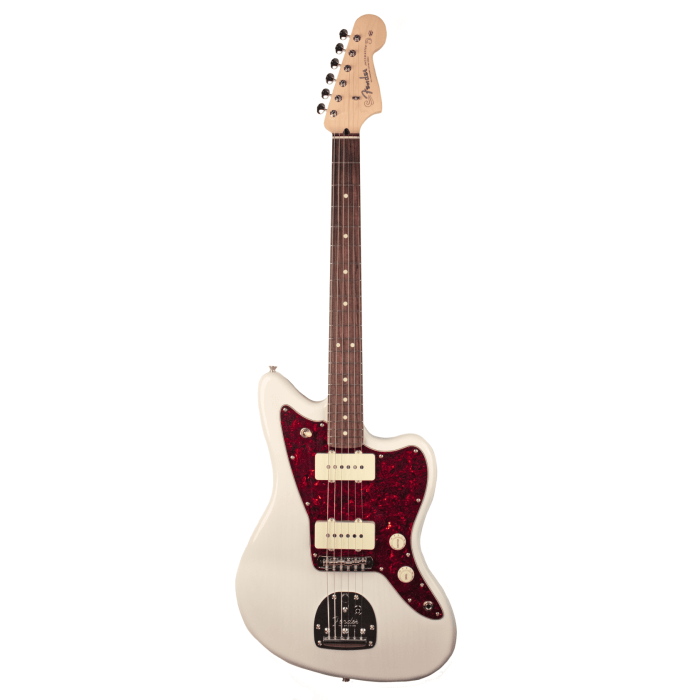 Met vintage locking tuners, een moderne "C" hals met satijnen afwerking, een 9.5" radius toets en smalle frets, ook uitgerust met een vintage-style zwevende tremolo en zadels, biedt deze gitaar soepele bespeelbaarheid voor spelers van alle niveaus. Zijn nieuw ontworpen Hybrid II Custom Voiced Single Coil pickups zorgen voor de typische klank die alleen een Jazzmaster kan bieden.