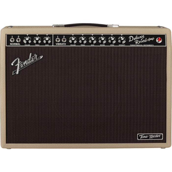 In een gewaagde Fender primeur maakt de Tone Master Deluxe Reverb Blonde versterker gebruik van enorme digitale verwerkingskracht om een enkele opmerkelijke sonische prestatie te bereiken: het natuurgetrouw modelleren van het circuit en de 22-watt uitgangsvermogen van een originele Deluxe buizenversterker. Een krachtige 100-watt digitale eindversterker wordt gebruikt om de headroom en het dynamisch bereik van een echte vintage Deluxe buizenversterker te bereiken. De resonante grenen kast is gekoppeld aan een enkele Celestion® NEO Creamback luidspreker voor een meer uitgesproken rock 'n' roll smaak. Het resultaat is een buisloze Deluxe Reverb toon, volume en dynamiek die vrijwel niet te onderscheiden is van het originele buizenmodel. Het versterkermodel is aangepast om de virtuele bright cap op het Vibrato kanaal te verwijderen, wat moderne spelers meer tonale flexibiliteit geeft bij het gebruik van distortion en overdrive pedalen. Daarnaast biedt de galmregelaar nu eenvoudigere fijnafstemming bij lagere instellingen. Misschien wel het meest opmerkelijke is dat zelfs met al deze functies en meer, de Tone Master Deluxe Reverb in feite maar half zoveel weegt als een Deluxe met buizen.