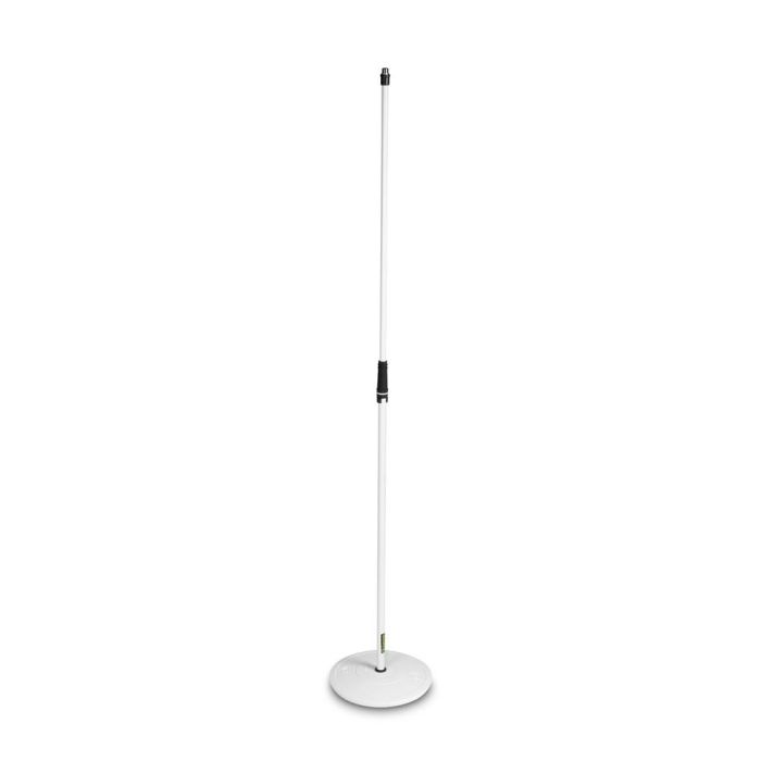 De MS 23 is een hoogwaardige microfoonstandaard met dikwandige buizen, witte poedercoating en een maximale hoogte van 160 cm. De uitzonderlijk stabiele ronde voet, gemaakt van gietijzer, is voorzien van een rubberen bodem om akoestische isolatie te bieden en oppervlakken te beschermen.