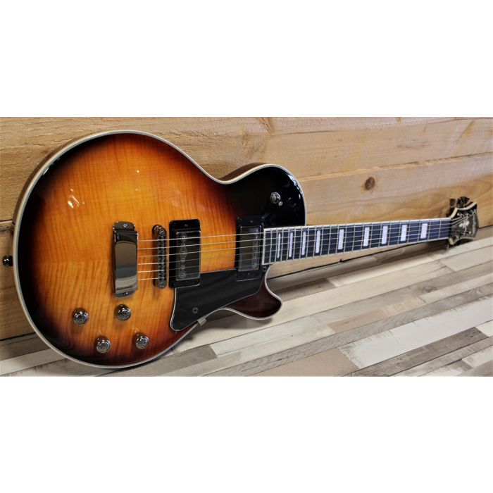 Hell yes! De Swede is terug van weggeweest! En als herintroductie komt hagstrom komt met een gelimiteerde Super Swede uitgevoerd in een prachtige flame tijger burst. Een prachtige single-cut gitaar met een mahoniehouten hals en body en een esdoorn top met een flamed maple fineer. Groot verschil met zijn Swede broer is de langere mensuur van 25.5 inch waardoor je een mix krijgt van eigenschappen van Amerikaanse merken met een F en een G. De 22-frets toets is gemaakt van resinator; een composietmateriaal als alternatief op ebben met een zeer gelijkwaardige uitstraling, sound en feel. Uitgerust met 2 sterke Custom 58 Alnico5 humbuckers met aparte toonregeling en extra filterschakeling. Hagstrom gebruikt een verchroomde TOM brug en stopbar.