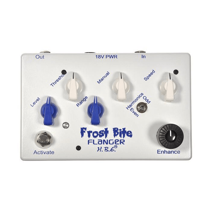De Frostbite is een volledig analoge flanger die een breed scala aan geluiden kan produceren. Inclusief: Flange, Chorus, Rotary, Vibrato en Pitch Shift. Functies: Level, Threshold, Enhance, Range en Speed regelaars en Even en Odd Harmonics schakelaar. True-Bypass schakeling.