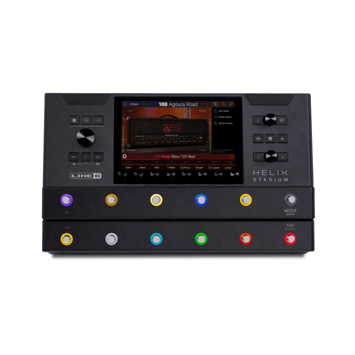 De Line 6 Stadium XL is niet alleen een geavanceerd multi-FX & IR systeem uitgerust met een hele bibliotheek vol next-generation tone, je kunt je optredens bedienen vanaf dit ene apparaat en de ingebouwde DAW gebruiken om je band op te nemen, je audio te mixen, of zelfs je instrument te muten zodat jij eroverheen kunt spelen voor onbeperkte creatieve performance opties.