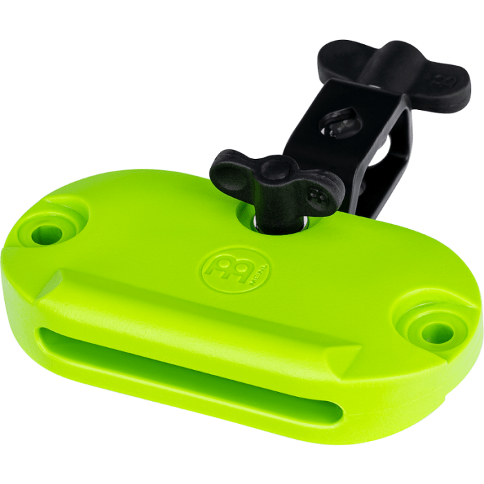 Een oerdegelijk Percussion Block van Meinl met een hoge pitch, uitgevoerd in Neon Green.