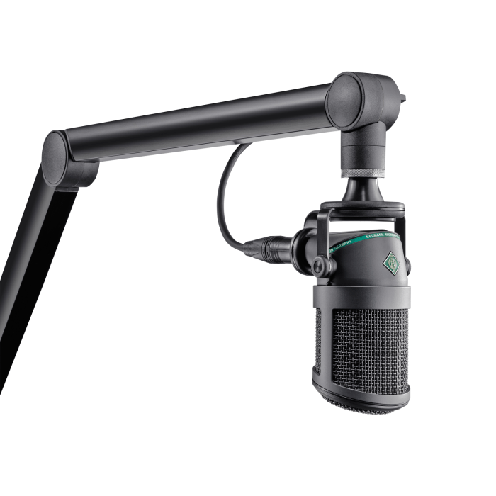Tot slot heeft Neumann de mechanische ophanging van het kapsel opnieuw ontworpen om de gevoeligheid van de microfoon voor statiefgeluid of schokken te verminderen. De microfoon in zijn houder is elastisch opgehangen en compatibel met alle standaard broadcast microfoonarmen.