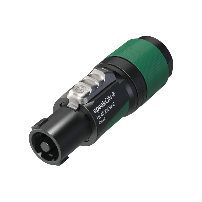 De Neutrik NL4FXX-W-S van is een vierpolige, female speakON connector. De connector is bedoeld voor kabels met een diameter van 6 - 12 millimeter. Het is een vergrendelbare plug, die onopzettelijk openen verhindert. De behuizing is zwart-groen. De montage is nu nog eenvoudiger omdat je de trekontlasting mechanisch kunt inklikken. Het is de opvolger van de bekende NL4FX blauwe speakon connector.