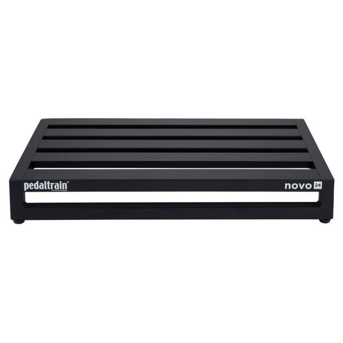 De Pedaltrain Novo 24 is een medium/groot pedalboard waar veel pedalen op kunnen. Grote pedalen kan je bijvoorbeeld op de bovenste rij plaatsen en de pedalen met een normaal formaat op de onderste rij. Je kunt er tot drie rijen pedalen (normaal formaat) boven elkaar kwijt.