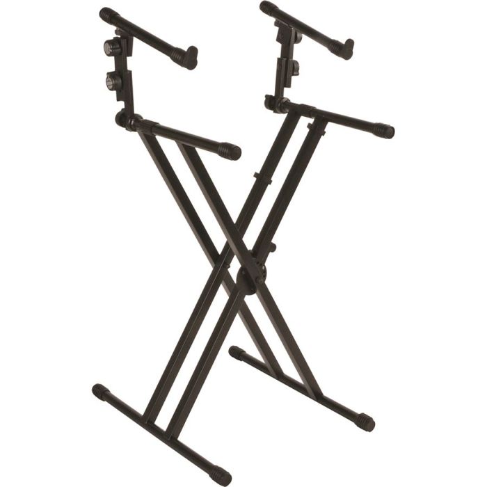 De Quiklok QL-642 is een keyboard stand voor het plaatsen van twee keyboards of synthesizers. Hij heeft een (totaal) draagvermogen van 120 kilo, is volledig inklapbaar dus handig mee te nemen. Hij is daardoor geschikt voor studio en podium.