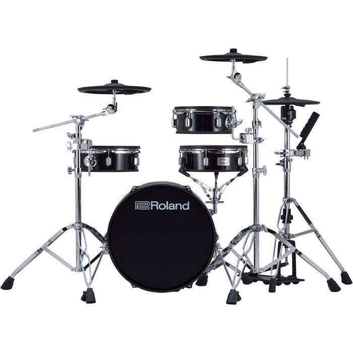 De Roland VAD103 is een betaalbaar en toch complete digitale kit die de look en feel meegeeft van een akoestisch drumstel, dit is het instapmodel van de V-Drums Acoustic Design serie van Roland. De pads hebben echte houten ketels en spelen zoals akoestische drums maar dan zonder het geluid dankzij de dubbellaags gaasvellen. Verfijnde drumtechnieken komen tot hun recht dankzij meerdere speelzones, bewegingen van de bekkens en de hihat die zich gedraagt als een akoestische.