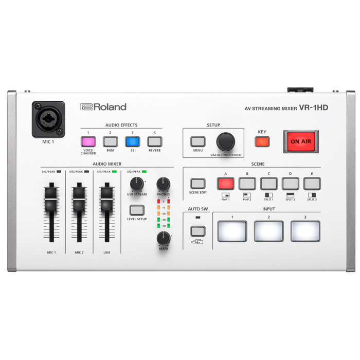 De Roland VR-1HD AV streaming mixer is ideaal voor online streamen van podcasts, vlogs, optredens en games. Deze professionele mini-regiestudio geeft je alle controle over beeld en audio, terwijl je live streamt. De VR1HD heeft aansluitingen voor 2 microfoons, een stereobron (b.v. keyboard of DJ-mixer) en 3 camera's. Het enige wat je er dus bij nodig hebt zijn microfoons, camera's en een streaming account om mee te streamen.