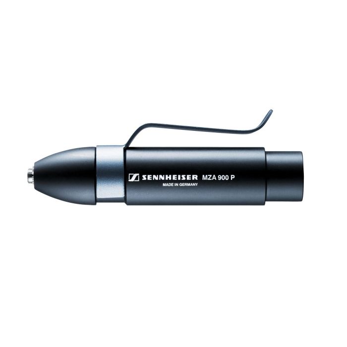 De Sennheiser MZA 900 P is een phantom power adapter. Hiermee kun je een Sennheiser condensator microfoon (met 3,5 mm mini-jack plug) aansluiten op een traditionele XLR-microfoon ingang. De aangesloten microfoon krijgt dan zijn voeding dan via deze adapter. Natuurlijk moet de werkspanning overeenkomen met de fantoomspanning die de tafel genereert. De Sennheiser MZA 900 P werkt onder andere samen met de Evolution wireless serie.