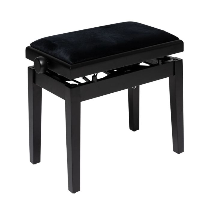 - matzwarte, hydraulisch verstelbare pianobank met brandvertragende zwartfluwelen zitting