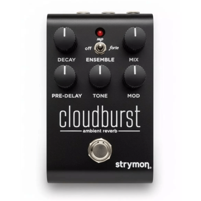 Alle premium componenten, geluidskwaliteit en wegwaardigheid die je verwacht van een Strymon reverb pedaal zitten in Cloudburst's nieuwe compacte formaat. Het heeft onze discrete JFET analoge front end, ultra-stille 116dB signaal tot ruis prestaties, een krachtige ARM Superscalar processor, stereo input/output, en volledige MIDI controle. Met een onovertroffen gebruiksgemak en een aantal van de beste reverbgeluiden die Strymon ooit gemaakt heeft, kan Cloudburst gemakkelijk het enige reverbpedaal zijn dat je nodig hebt op je pedaalbord.