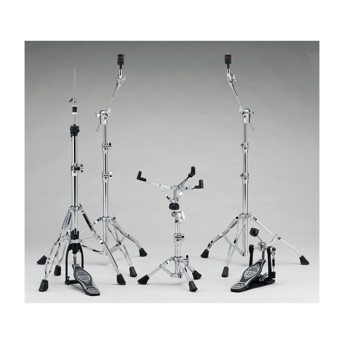 Tama hardware pack van een tour-waardige kwaliteit en bestaande uit een HS80W Roadpro snare stand, HH605 Iron Cobra hi hat stand, 2x HC83BW Roadpro cymbal boom stands, HP600D Iron Cobra Duo Glide Single bassdrum pedaal.