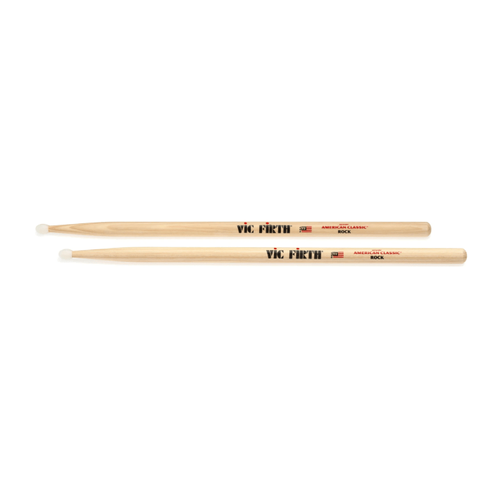De Vic Firth RockN uit de American Classic Hickory Series met nylon tip is een relatief lange en dikke stok. De maatvoering heeft veel gelijkenissen met de SD-stokken uit de American Custom Maple reeks, maar vanwege het gebruikte hickory is de Rock stok beduidend wat zwaarder. Daarnaast is de stok voorzien van een oval top en met dit alles doet de stok zijn naam absoluut eer aan; met deze stok ga je rocken!