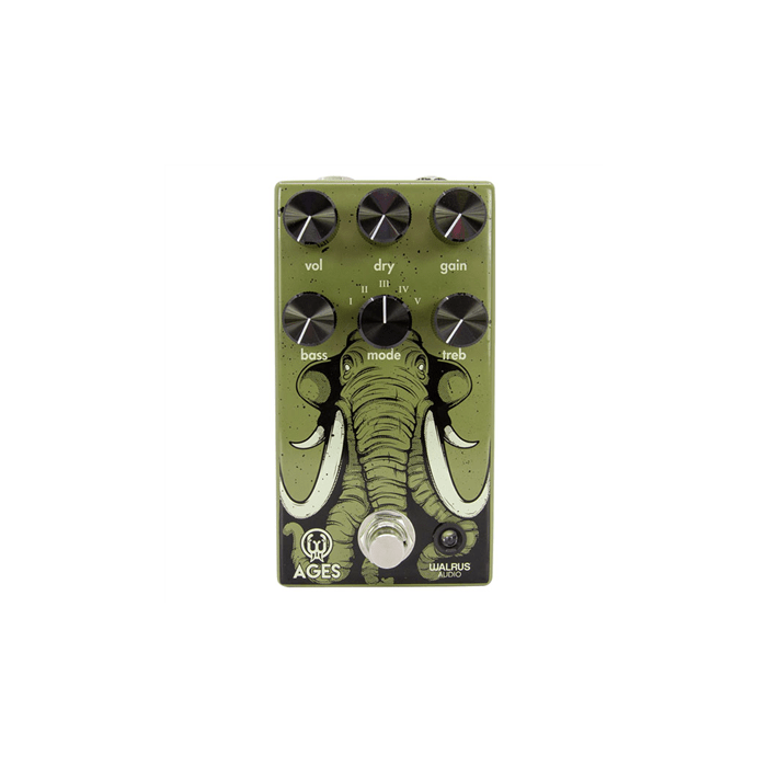 Overdrive is al eeuwenlang het effect dat voor velen van levensbelang is. Het wordt gebruikt om de frontlinies van de mix aan te vallen en een duidelijke boodschap af te leveren aan trouwe luisteraars die niet snel vergeten zal worden. Ages is een enorm veelzijdige overdrive machine die klaar staat voor elke versterker en pickup combinatie die er tegenaan gegooid wordt. Het is een eerste trap overdrive met innovatieve functies die op zichzelf kan staan en goed kan combineren met andere drives. De draaiknop geeft de speler de mogelijkheid om te kiezen uit vijf verschillende standen van gain en clipping. Gebruik de speciale droge knop om al het droge signaal eruit te halen voor rijke verzadigde tonen of meng het terug voor meer helderheid en punch. Ages is klaar om zijn mannetje te staan en een onvergetelijk geluid te leveren.