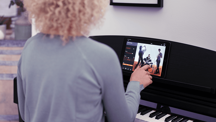 Sluit de Clavinova CSP aan op uw tablet of ander smartdevice en de Smart Pianist-app biedt u onmiddellijk talloze muzikale mogelijkheden: speel uw favoriete nummer mee, ontdek een breed scala aan klanken of kies een begeleiding met Accompaniment Styles en speel mee in een virtuele band, compleet met microfoon.