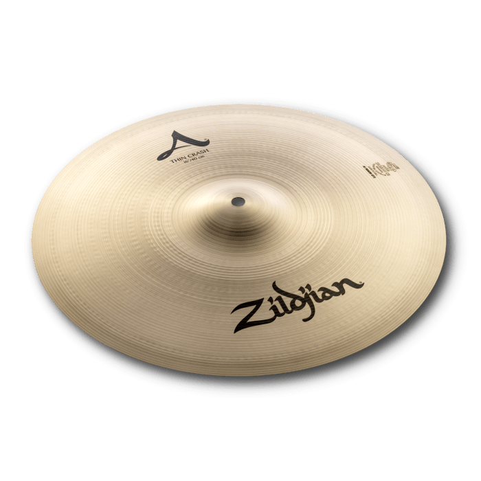 De Zildjian Thin Crashes zijn gemaakt met een levendige concentrische "lathing" die een midden tot hoge tonaliteit behoudt. Hun middelgrote bel zorgt voor een gelijkmatige balans tussen attack en sustain. Deze crashes zijn snel, helder en lichtgewicht met een dunne boog voor het uiterste in respons en wash.